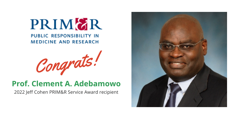 We are glad to announce that in recognition of his work in research ethics, CBR Director, Professor Clement Adebamowo has received the Jeff Cohen Service Award from…